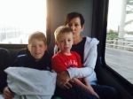 Four suitcases, two pet carriers, two adults and two very tired little boys head to our hotel in San Francisco.