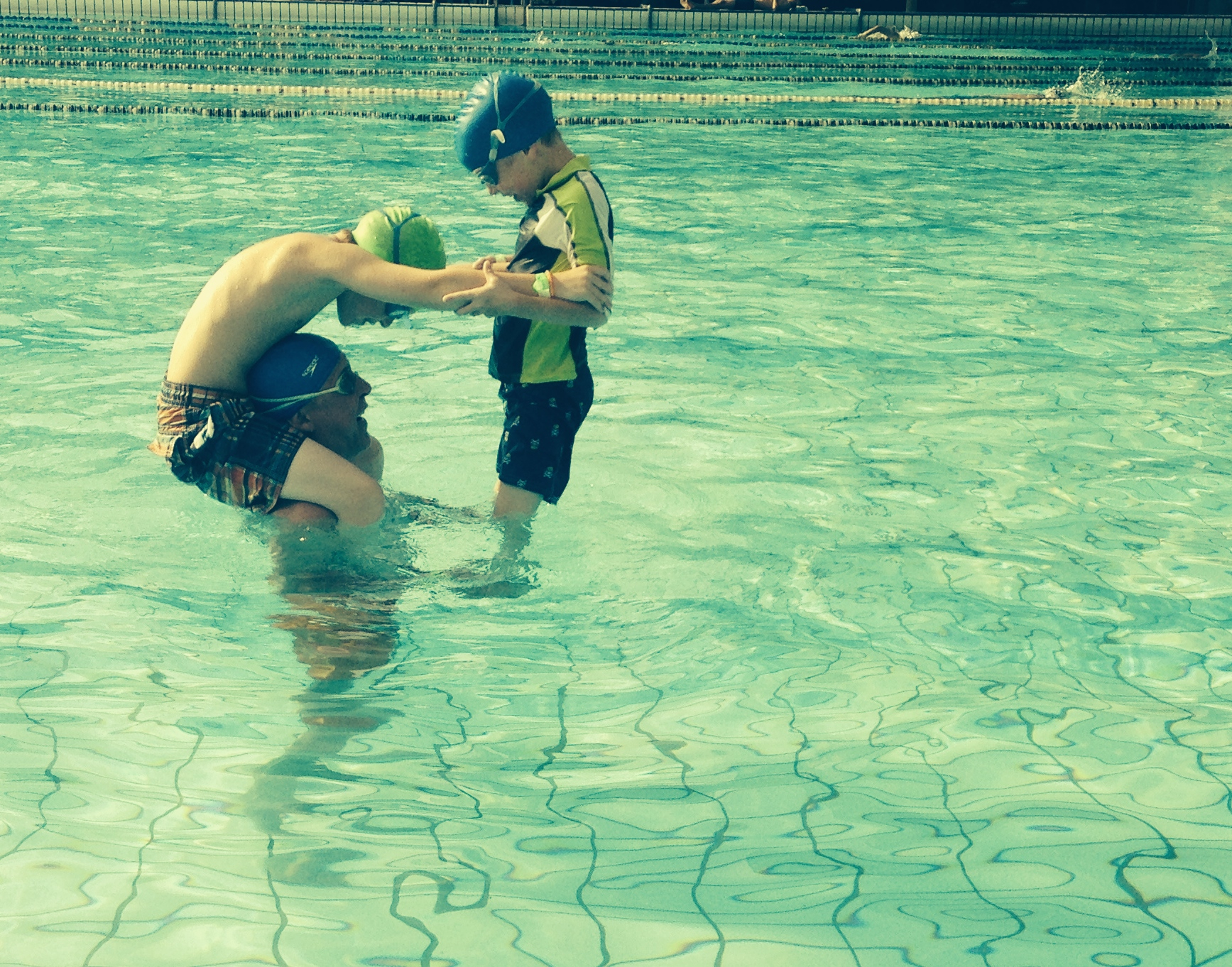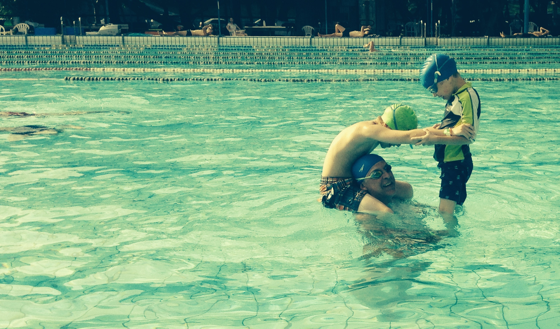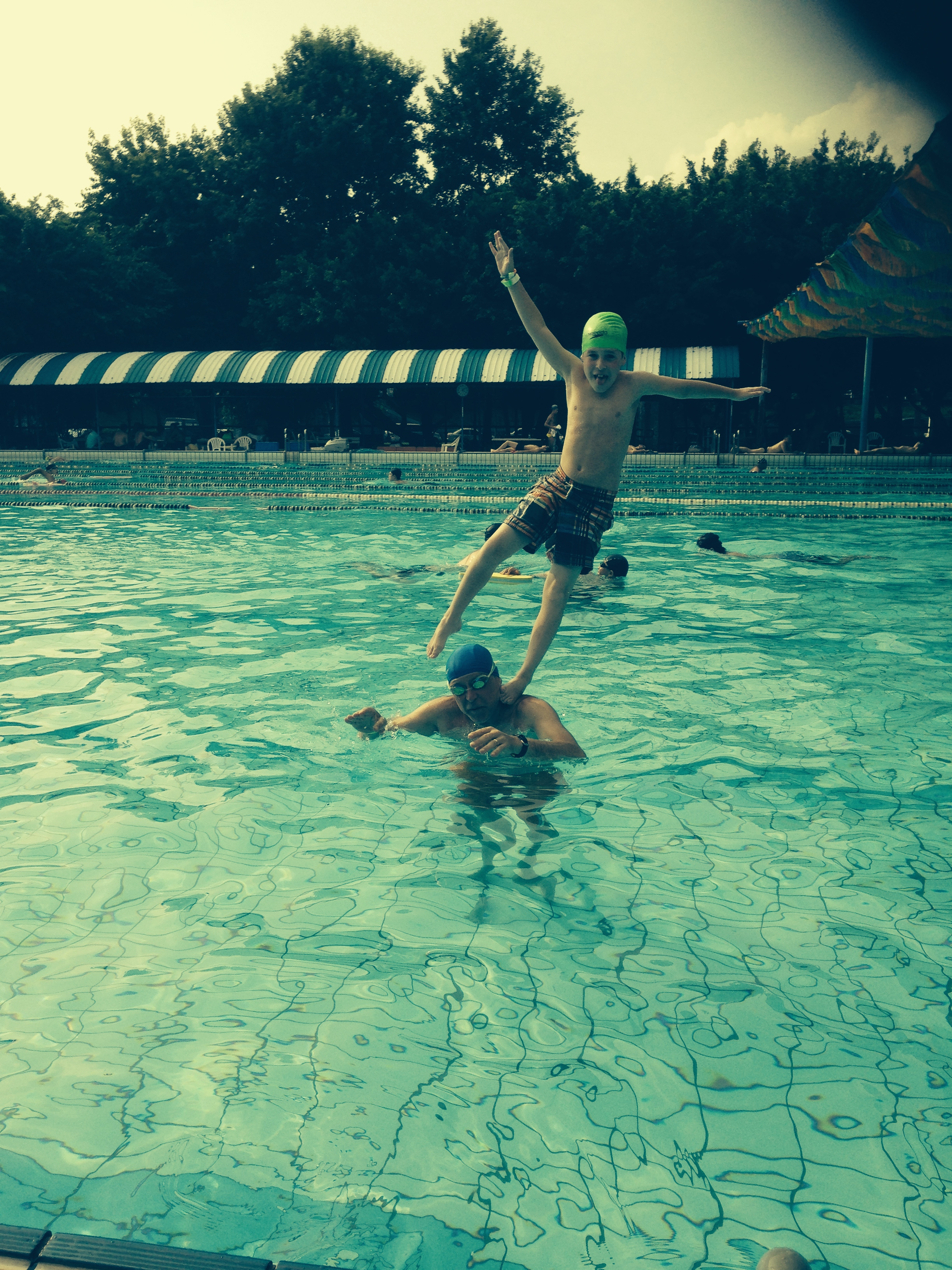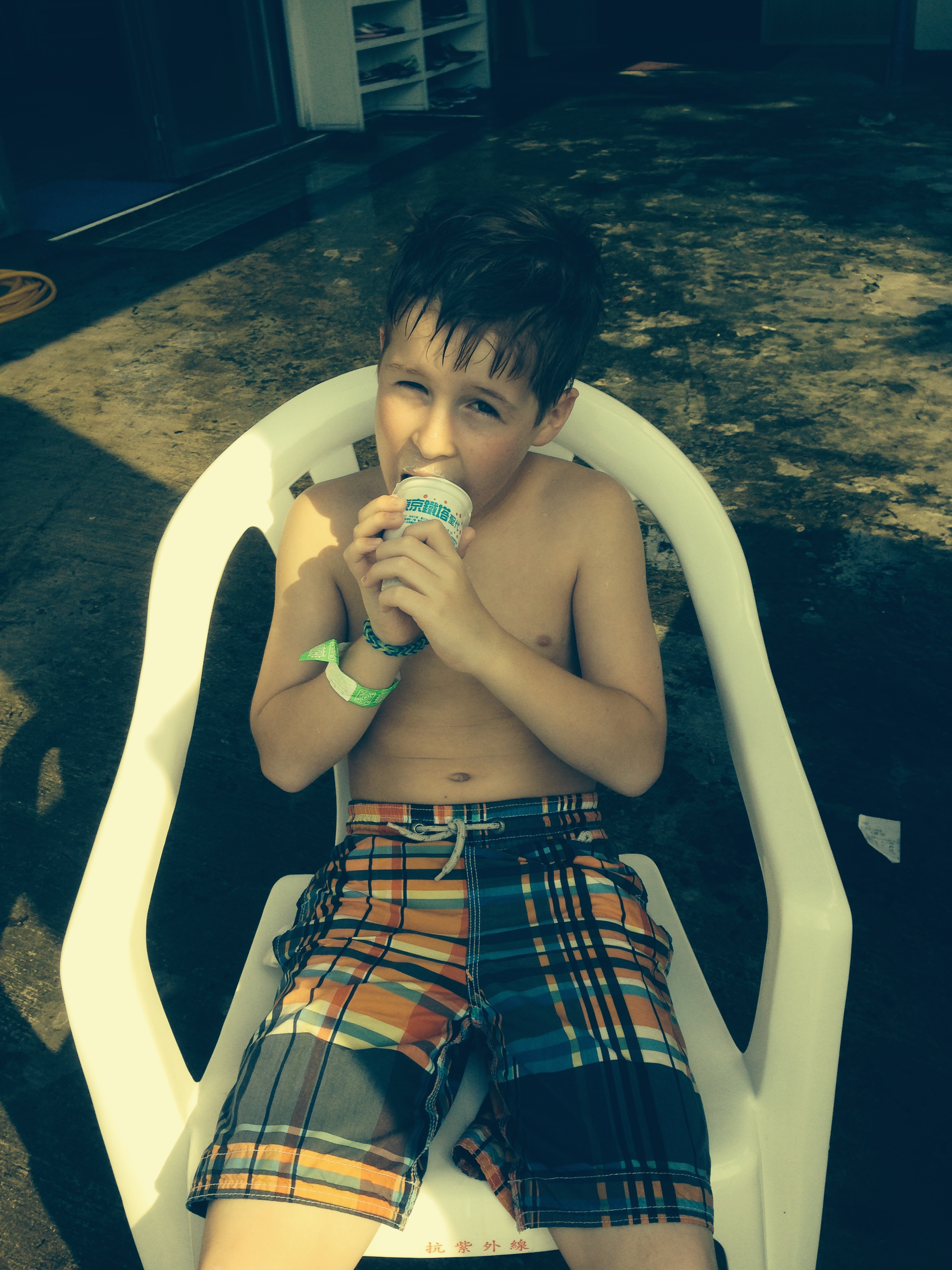 And they sell hot dogs (no bun, just a dog on a stick), ice cream, soft drinks and lots of stuff I was culturally unable to identify. Another curious thing about Taiwan is everyone, I mean everyone – including bald guys like me – has to wear a swim cap. NO EXCEPTIONS! I even tried showing my freshly shaved scalp but no dice. But the boys and I did have a lot of fun fooling around and they enjoyed their ice creams almost as much as swimming with Dad.