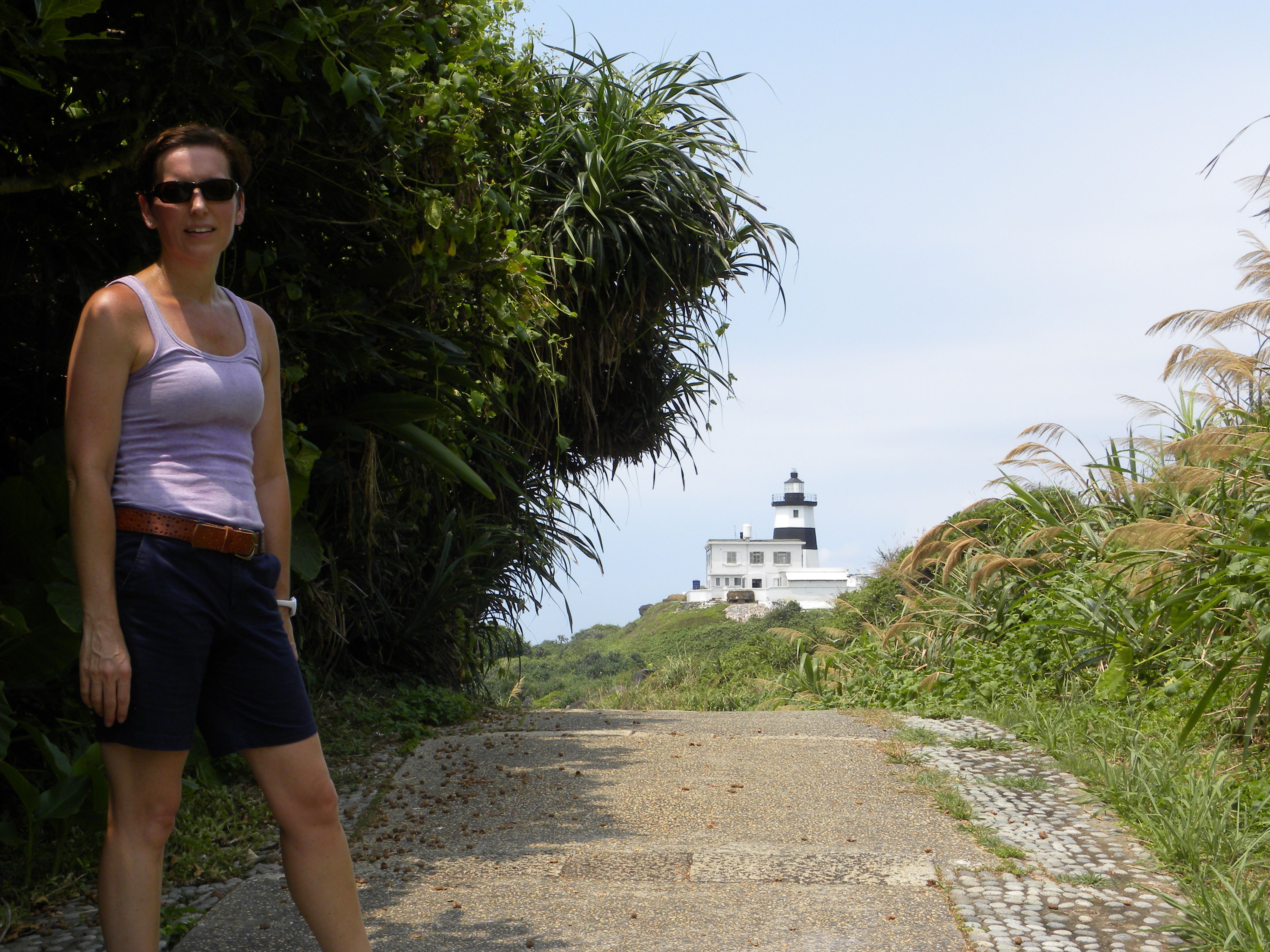 Then, seized with a mad tourist frenzy or perhaps crazy from the heat, we decided to hike what looked like a short distance from Baishawan to Fuguei Cape which bears a lighthouse and is the northernmost point on the island of Taiwan. On the way we passed through a fresh seafood market with restaurants. Apparently the way it works is you buy the fish, then take it to the restaurant and they cook it for you, which made me wonder what exactly the restaurant charges you for bringing your own menu…But, limited by Becky’s cloying vegetarianism (curse me now Janice) and the fact that we had already eaten, we never found out or took any pictures for that matter.