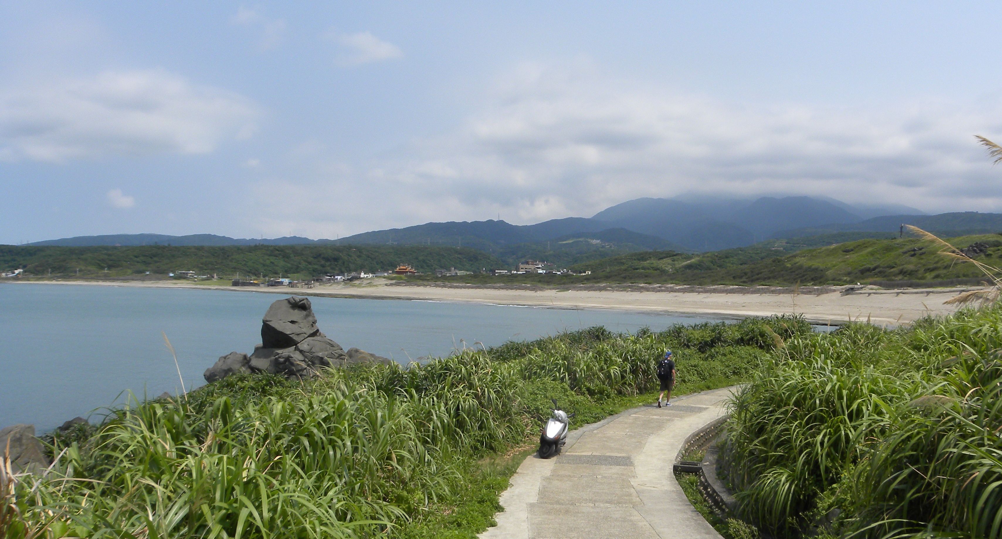 While we were eating, Amanda appeared and said she would be happy to show us the way to the beaches. When we left the restaurant she was outside and led us to her house down the street. One of her nephews stood next to a scooter and Amanda sat on hers. “Do you know how to drive a scooter, Jim?” she asked. I replied that I did so she threw me a helmet and instructed one of her nephews to go with me and took Becky and her other nephew on hers. This may seem unusual but since arriving in Taiwan I have seen entire families (parents and at least two children, sometimes even the dog too) on traveling via scooter. So off we went.