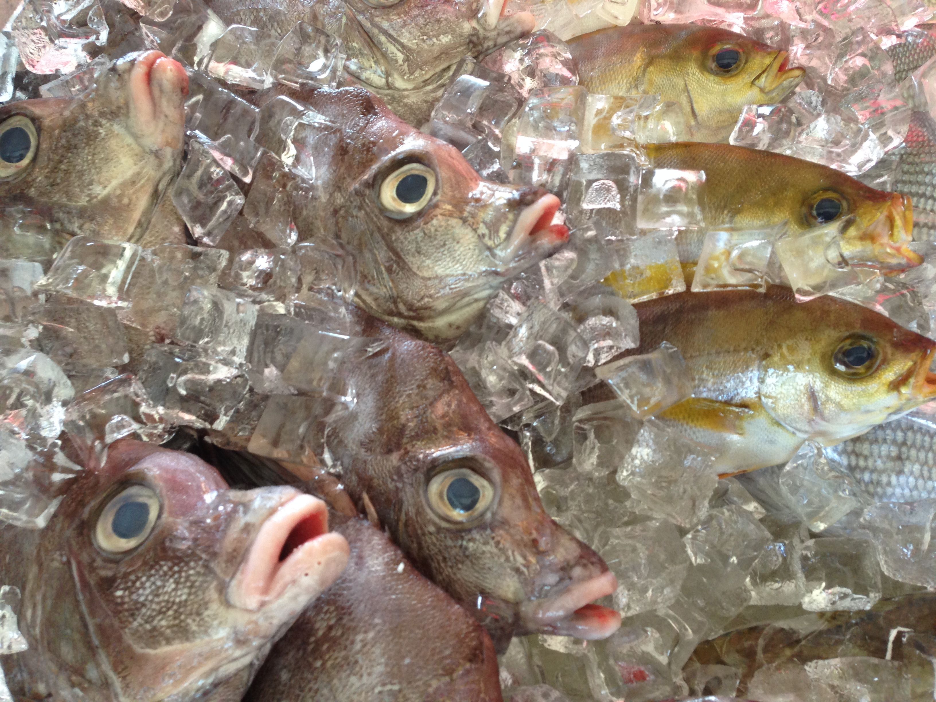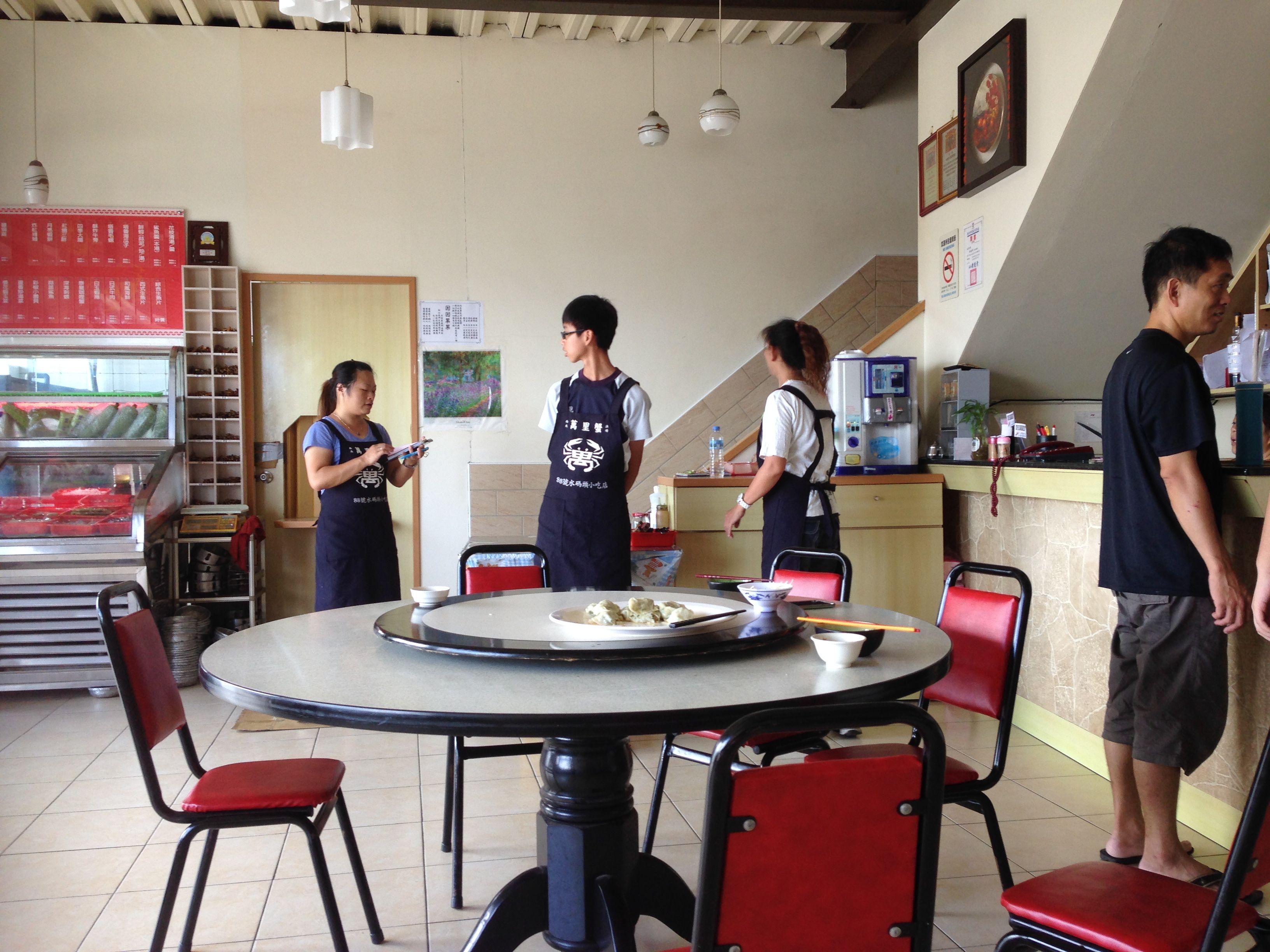 The next day -equally hot and humid, we decided to make the same trip and go even further to Jinshan. Once we got off the faithful 863 bus we walked through the town and stood beneath the shade of a temple gate so we could get our bearings on how to reach the beach. A nice lady on a scooter with two young boys riding with her pulled over to ask us in English if we needed directions. She explained that her name was Amanda and she had lived abroad and that she was out running errands with her two nephews. She was extremely helpful and directed us to the beach and recommended we have lunch at a restaurant called 88. We went there and when we asked for the menu, they slid open the door to the cooler and pointed to a variety of fresh fish as if to indicate (since they spoke no English) that this was the menu. We got vegetable fried rice for Becky and I had two fish (complete with heads) cooked in miso broth along with several fresh shrimp. The food was amazing.