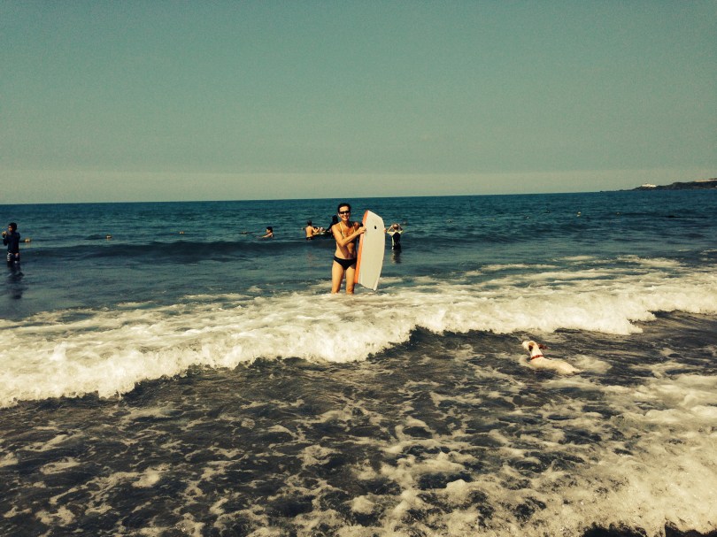 Jake to the Rescue September 29, 2014 3264 × 2448 Bow Wows On the Beach Jake rarely likes to be far from Becky if he can help it. Here he swims out to rescue her from the Boogie Board.