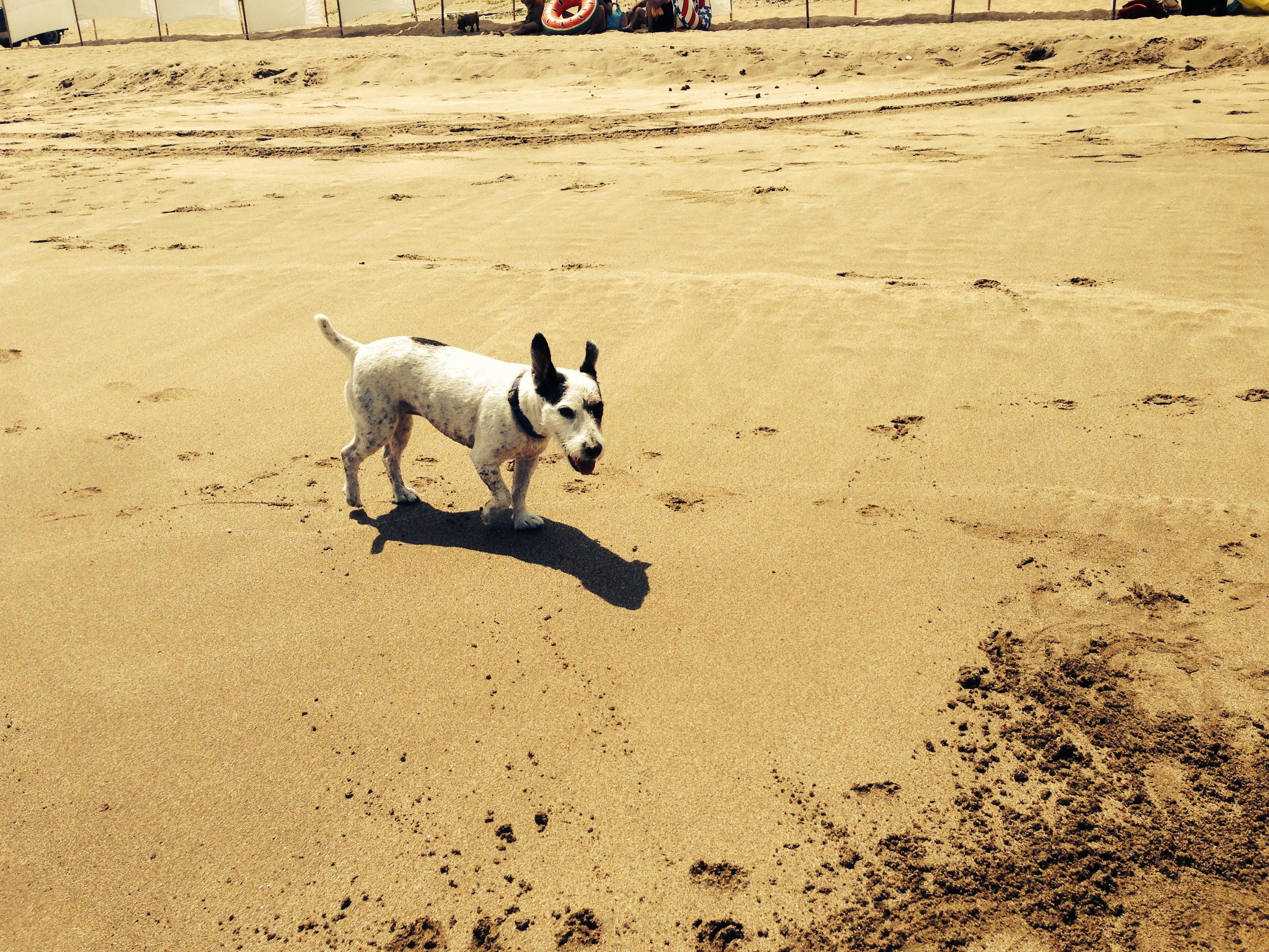 Scout & About September 29, 2014 3264 × 2448 Bow Wows On the Beach Scout prefers to wade into the depths at her own pace and rarely goes deeper than her tummy – which is not very deep.