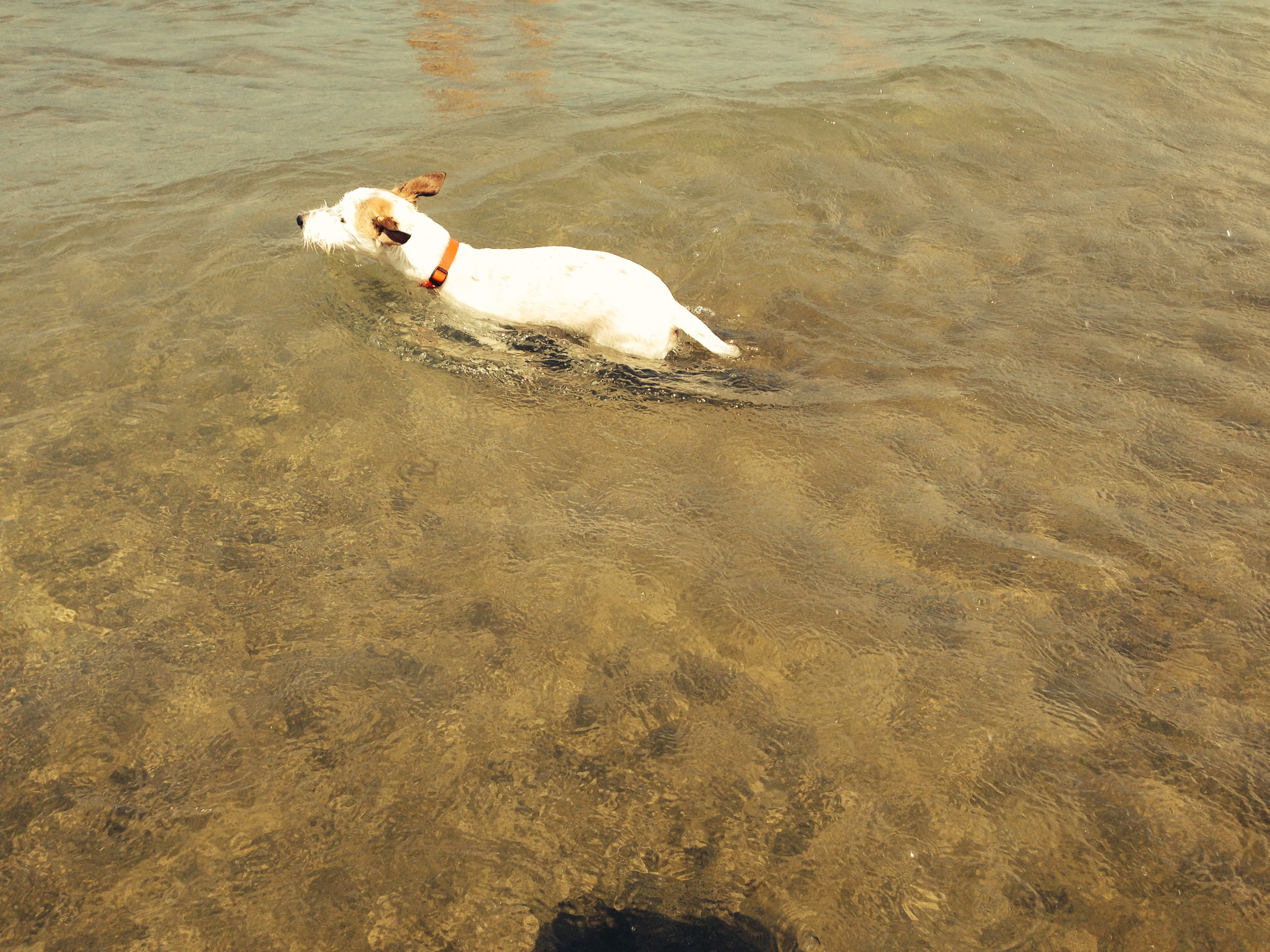 Surfin’ Jake September 29, 2014 3264 × 2448 Bow Wows On the Beach The only thing Jake likes better than swimming is rolling in dirt after swimming.