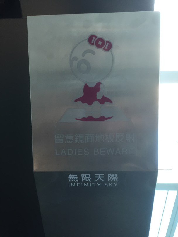 This is to remind the ladies that folks can see up their skirts when they stand over the mirrored sections of the floor. Duh…