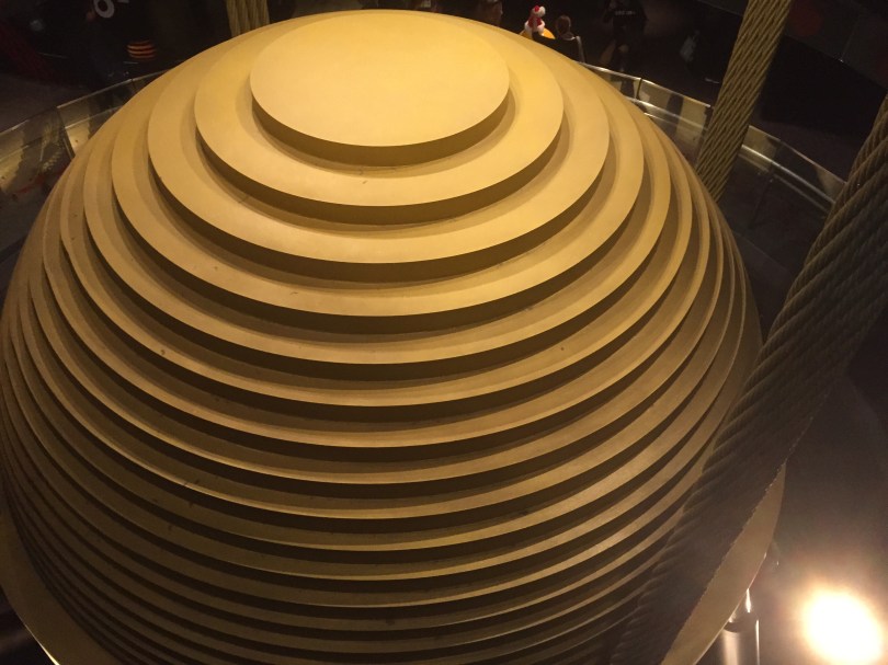 An engineering marvel, the Taipei 101 is famous for extreme stability in a land of typhoons and earthquakes. This giant metal counterweight keeps it from falling over.