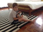 So we had the bright idea of getting him a buddy, another dog to keep him company thus began a rather quirky quest. Jake’s breeder said she wouldn’t have any puppies available for 6 months so we started contacting other Jack Russell breeders. They all turned out to be kind of weird. They had houses full of bouncy, yappy little dogs and wore homemade t-shirts with “I Heart My JR” captions over pictures of their loved ones. One guy swore to me that his dog could talk although what came out of his hairy progeny’s mouth didn’t sound anything like “I love you” to me. The only things missing were the tinfoil hats and UFO abductions.